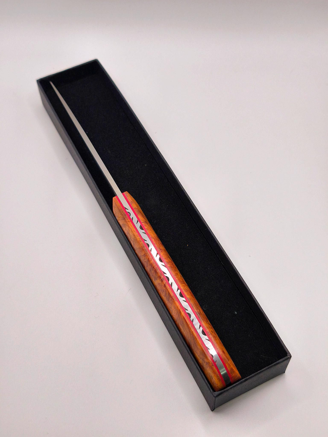 Découvrez notre couteau d’office artisanal fabriqué en France, fruit d’un savoir-faire traditionnel. Fabriqué et affûté à la main, il allie authenticité, précision et élégance. Idéale pour les travaux de précision : éplucher, trancher ou ciseler vos fruits et légumes. Son manche, travaillé à la main, offre une prise en main confortable et un équilibre parfait.